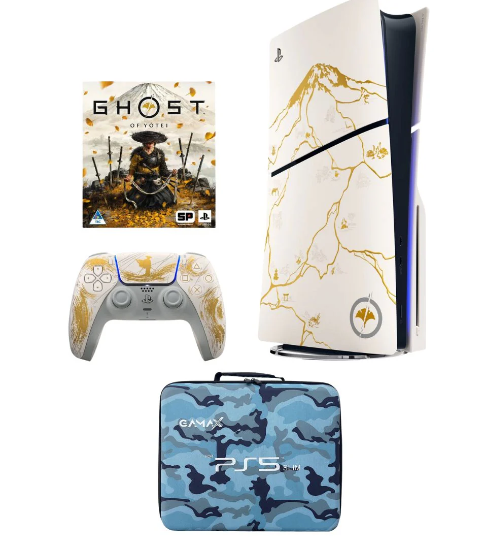 Step into the legend with the PlayStation 5 Slim Ghost of Yotei Limited Edition Bundle, featuring a special PS5 Slim Disk Edition console inspired by the mythical Yotei warrior.
