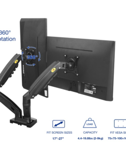 The F160 dual screen desktop monitor arm has a durable Gas-strut design to enable adjustment of your screen to your desired height and angle. This allows you to experience your interface from the best possible viewing angle. This design is particularly useful in a professional environment for collaborative work that requires multiple screens, or any space where you need to efficiently fit multiple screens. A gravity spring pivot joint design offers effortless titling to eliminate awkward positioning.