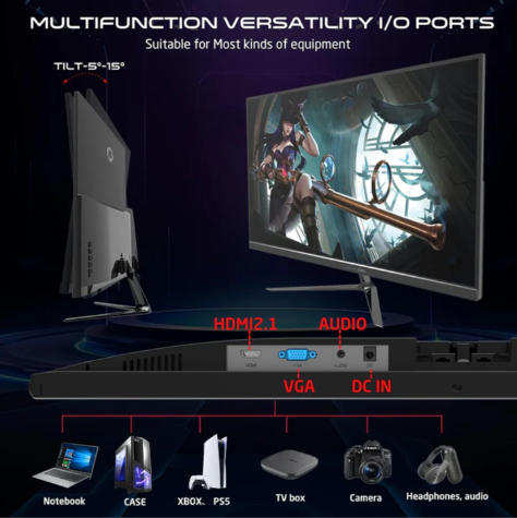 Versatile Connectivity Connect all your devices with ease using HDMI 2.1, VGA, and Audio Out ports. Fully compatible with Xbox Series X|S, PS5, and Nintendo Switch.