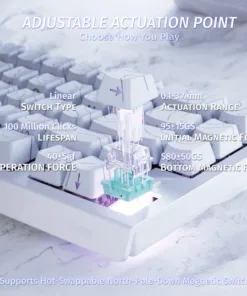 • The entire X68 HE wired keyboard is equipped with fully adjustable Hall magnetic switch, enabling you to set every key’s actuation point from 0.1mm to 3.4mm in 0.01mm steps, putting you in control for fast keypresses or ultra-accurate typing.