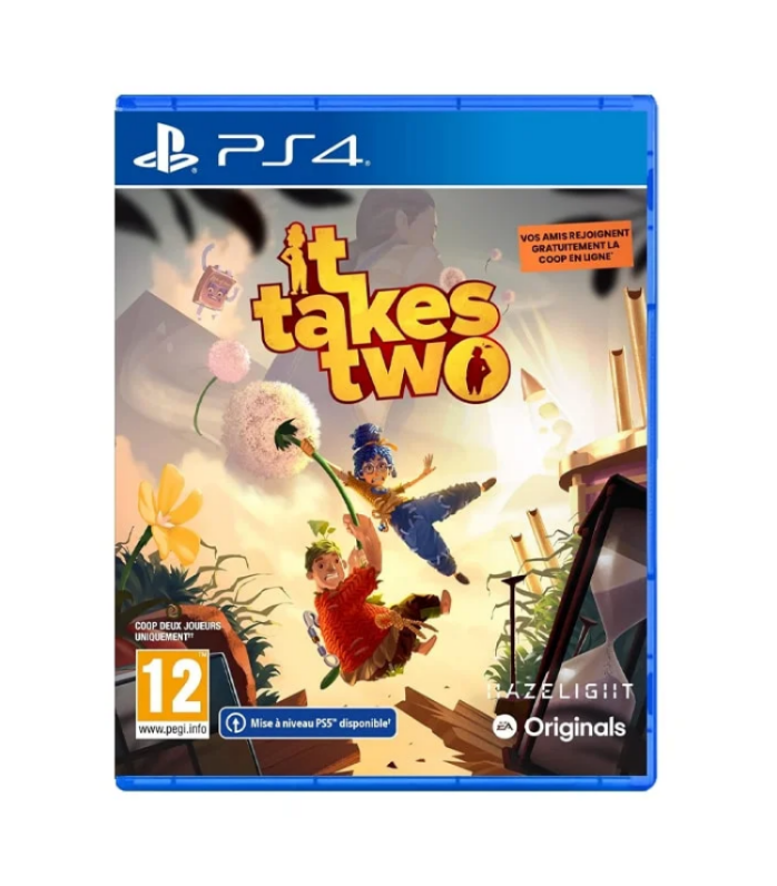 لعبة It Takes Two هي لعبة مغامرات تعاونية من تطوير Hazelight Studios ونشر Electronic Arts. تقدم اللعبة تجربة فريدة ومبتكرة حيث يتعين على اللاعبين العمل معًا لحل الألغاز والتغلب على التحديات. تدور القصة حول زوجين على وشك الطلاق يجدان نفسيهما عالقين في عالم سحري، حيث يتعين عليهما التعاون لإصلاح علاقتهما.